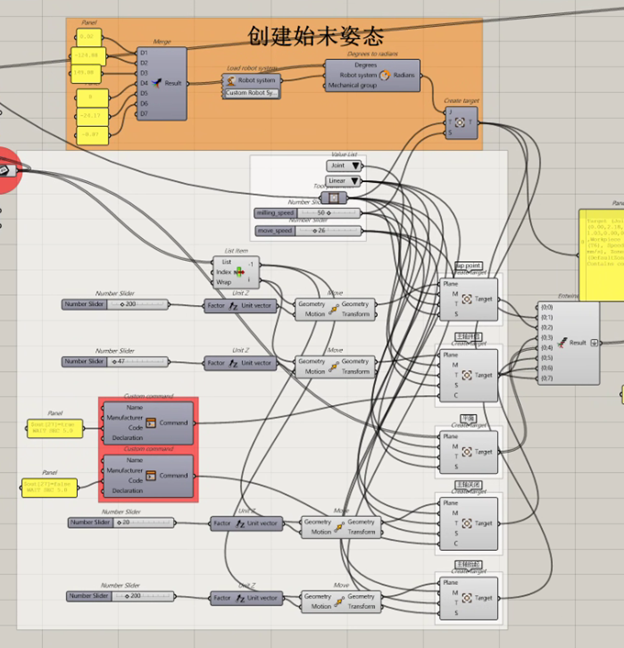 (1)利用大界Grasshopper对铣削前和铣削开槽后的6cm*6cm*60cm的木条进行三维建模,并模拟机械臂的铣削过程。