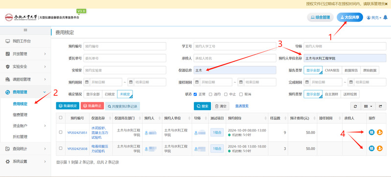 (3)试验完成后,设备管理员审核费用
