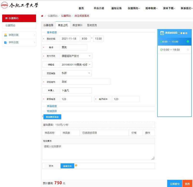 实验设备预约、使用与缴费