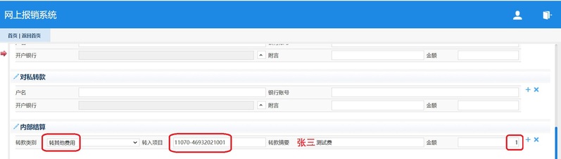 (3)内部结算,转其他费用,转入项目【11070-46932021001】