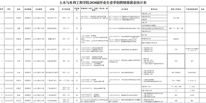 学院毕业生精准就业意向摸排汇总表