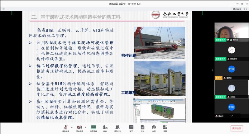创新实验班班主任贾莉莉老师为全体同学带来了精彩纷呈的报告。她首先介绍了专业认知的重要性,激发了同学们对专业的浓厚兴趣。勉励同学们更快更准确地了解所学专业现状及发展情况,明确未来的职业发展方向,要具有前瞻意识,要将个人的发展融合在中国和世界的发展之中。然后从基于工业化、信息化、绿色化、智能化等四化的BIM技术,基于装配式技术智能建造平台的新工科,物联网大数据的建筑运维管理和基于BIM+GIS引擎的CIM数字孪生智慧城市等四个方面增进大家对所学专业的认识和对科技前沿的了解。最后鼓励大家成为能胜任土木工程项目的智能规划与设计、智能装备与施工、智能设施与防灾、智能运维与管理等工作的智能建造拔尖创新型人才。