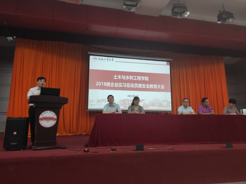 学院副院长张振华介绍企业实习的总体安排,着重从实习的规章制度、实习过程、实习的注意事项等各个方面为同学们进行了详细的解读。原建筑环境与技术工程系主任沈致和介绍企业实习的教学意义和对于学生专业能力培养的重要性,希望全体同学高度重视,认真准备,继续发扬土木人吃苦耐劳、拼搏进取的精神,圆满完成实习任务。建筑工程系副主任王波介绍了企业实习管理及考核要求,重点介绍了实习方式、实习内容、实习考核方式和要求等。道路与桥梁工程系支部书记扈惠敏强调了实习安全注意事项,要求同学们在实习的过程中按照指导老师和学院的安排,遇到问题和困难时主动与学院老师沟通交流,以崭新的精神面貌、朝气蓬勃的工作热情、科学规范的学习态度,圆满完成实习任务。会议还邀请了往届学生代表2016级本科生刘伟分享企业实习心得体会。