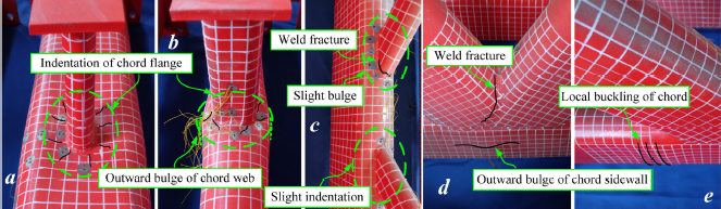 基于上述工程需求与科学问题,王静峰教授课题组对采用椭圆钢管的新型平面相贯节点的受力性能开展了系统的试验研究,揭示了椭圆钢管相贯节点的轴压性能及破坏机理,建立了考虑椭圆截面特征和相贯焊缝影响的轴压下圆端形椭圆钢管相贯节点数值分析模型,明确不同相贯特征下椭圆钢管相贯节点的支管应力传递机理、平/曲面屈服准则和节点域应力分布特性,提出了椭圆钢管相贯节点受压承载力计算方法,为椭圆钢管在桁架结构中的应用奠定了理论基础和科学依据。