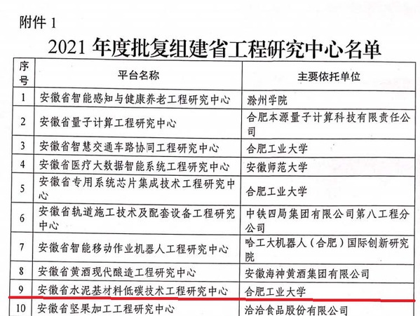 社团学姐漫画 获批安徽省水泥基材料低碳技术工程研究中心