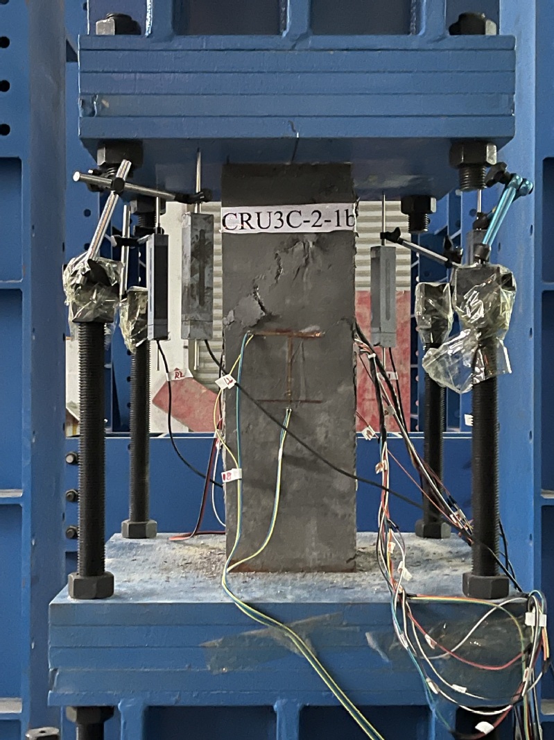 试验摘要:超高性能混凝土(UHPC)外包钢管混凝土叠合柱结合了UHPC卓越的材料性能和传统钢管混凝土叠合柱力学性能的优点,在沿海地区的高层建筑、大跨空间结构以及桥梁建设领域具有广阔的应用前景。本项目开展了19根UHPC外包钢管混凝土叠合柱和1根普通钢管混凝土叠合柱轴压试验,对试件的破坏形态、应力应变发展规律和轴压性能进行系统地研究,为UHPC外包钢管混凝土叠合柱在实际工程中的设计及应用提供参考。