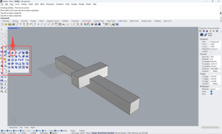 (1)利用大界Grasshopper对铣削前和铣削开槽后的6cm*6cm*60cm的木条进行三维建模,并模拟机械臂的铣削过程。