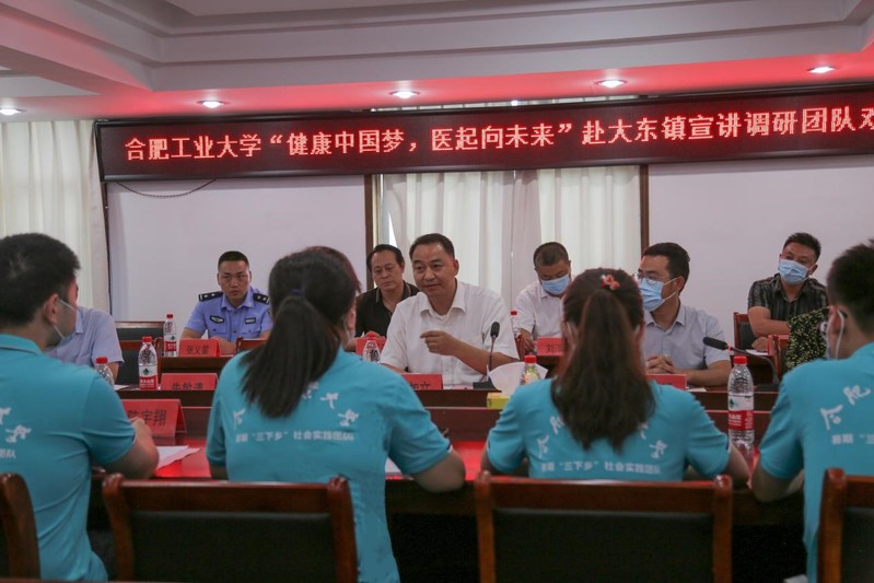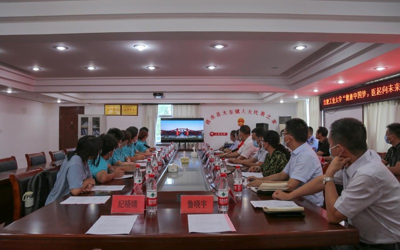 2022年7月18日,社团学姐漫画 “健康中国梦,医起向未来”大学生暑期社会实践活动启动仪式在江苏省涟水县大东镇镇政府三楼会议室举行。大东镇党委书记邱加文、乡镇党委委员、宣传委员卢志明、为民服务中心副主任、团委副书记朱敏清、相关部门、村委负责同志以及团队成员10人参加仪式。