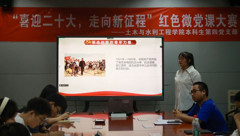 为深入学习贯彻习近平新时代中国特色社会主义思想,推动全体学生学深悟透党的创新理论,弘扬伟大建党精神,创新党建引领,增强支部活力,激励全体学生满怀信心奋进新征程,以实际行动迎接党的二十大胜利召开。社团学姐漫画 本科生第四党支部于2022年10月1日在纬地楼414开展“‘砼’迎二十大,走好新征程”红色微党课比赛。党支部全体成员通过“线上+线下”模式参加此次活动。