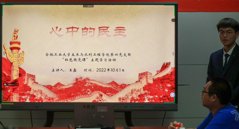 活动伊始,本科生第四党支部杨佳宏同志介绍了本次活动背景意义和主要内容、随后本科生第四党支部成员李梦楠、王鑫、申晓宇、周睿、骆天成五位同学分别以《存心寄华夏,青春赠山河》《心中的民主》《用时代故事讴歌党的伟大》《向着第二个百年奋斗目标迈进》《“双碳”目标》为主题给支部所有成员上了一堂堂生动鲜活的微党课。最后支部成员围绕党课内容进行了热烈的讨论和分享,活动最后,根据评委打分评选出了此次微党课比赛的前三名。