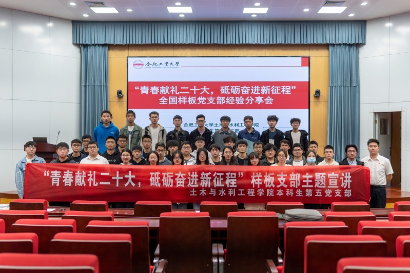 10月7日,本科生第五党支部于屯溪路校区学术会议中心开展了“青春献礼二十大 砥砺奋进新征程”全国样板党支部经验分享活动,此次活动主题紧紧围绕迎接宣传贯彻党的二十大这条主线,分享全国样板支部建设的优秀经验,鼓励同学们争创先锋,发挥积极作用,以饱满热情和昂扬状态迎接党的二十大胜利召开。