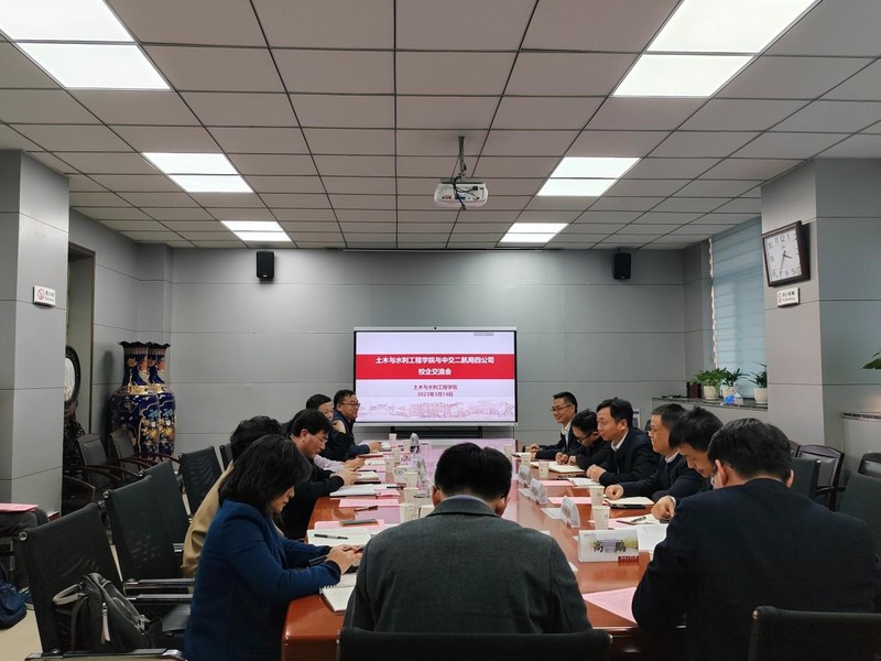 王静峰院长对中交二航局四公司党委书记、董事长赵成立一行表示热烈欢迎,并从学院发展历程、人才培养、学科建设、科学研究等方面详细介绍了学院的情况。希望双方能够以此次签约为契机,进一步汇聚双方优势资源,加强科研合作,合力攻坚技术难题,开展更深层次、更多方位的校企协同育人活动,利用“认知-实习-就业”提高学生行业认知和专业素养,促进学生高素质全面发展。