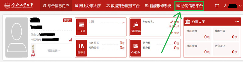 (1)试验申请人打开 【信息门户】→【协同信息平台】→【社团学姐漫画 】→【夜间假日期间进入实验室工作申请】