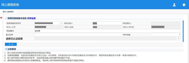 (1)财务系统→日常报销业务