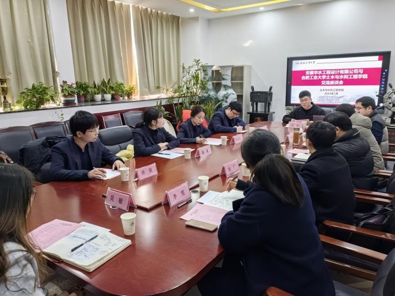 1月24日,安徽华水工程设计有限公司盛夏一行到学院开展座谈交流。安徽华水工程设计有限公司行政部、人事部、经营部相关人员及学院团委、水利水电工程系教师、研究生及本科生辅导员参加了座谈。
