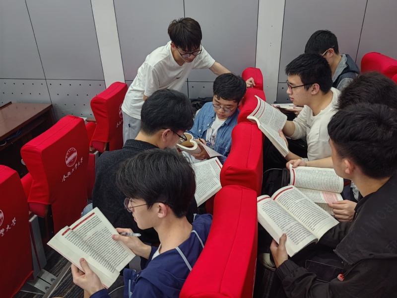 分组领学,读原著、学原文、悟原理。党员成长离不开读书学习,离不开知识的给养,更离不开用马克思主义的理论武装头脑,校准履职尽责的思想和行动。七位分组组长带领全体学员依次学习了《高等学校预备党员和党员培训教程》中“胸怀‘国之大者’”、“工业化是兴国之基”、“党领导的符合中国国情的工业化发展道路”、“科技自强自立是国家强身之基,安全之要”、“工科学子的时代使命”、“培养人才对高水平科技自立自强的意义”、“党的领导是中国特色新型工业化道路的根本保证”等主要内容。