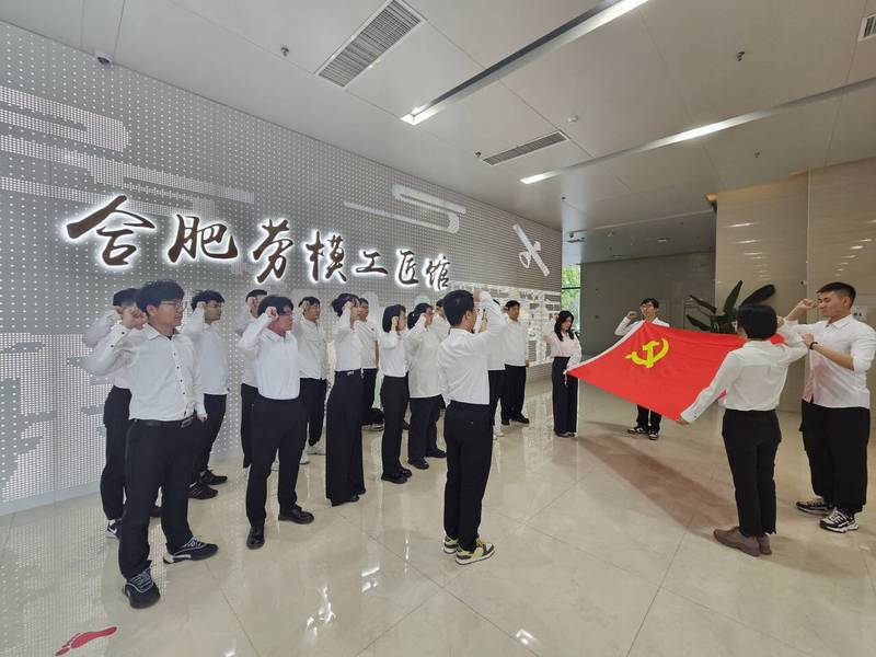 学员们在参观各行各业的优秀劳动模范和先进工作者事迹的过程中,深刻体会劳动的价值和意义。随后,在合肥劳模工匠馆展厅前,预备党员班学员面对鲜红的党旗,举起右拳,庄严宣誓。预备党员班学员水利水电工程2020-1班纪睿文感言:“通过本次主题实践,我学习了先进模范工作者的劳动光辉事迹,切身实地感受到执着专注、精益求精、一丝不苟、追求卓越的工匠精神。我将以此为激励努力学习专业知识,刻苦奋斗,为工程建造领域的智能化高质量进步发光发热。”