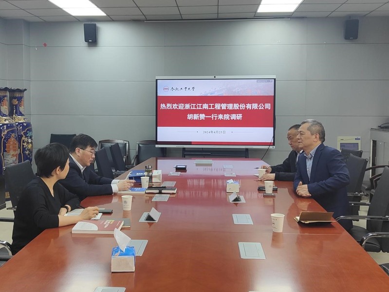 4月25日,浙江江南工程管理股份有限公司董事、常务副总裁胡新赞一行来社团学姐漫画 调研交流,会议由王静峰院长主持。