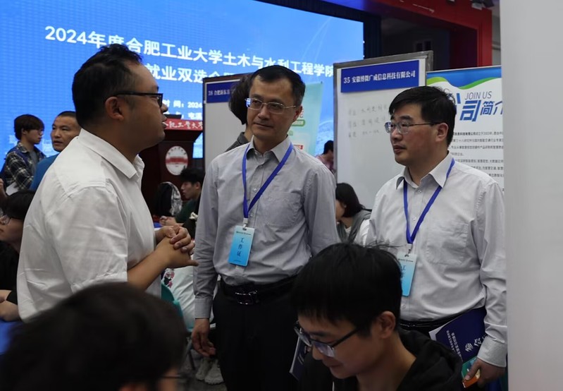 校企携手,共谋科研就业新思路。4月26日晚,2024年度学院精准就业双选会暨实习对接校企合作交流会在工程管理与智能制造研究中心会议楼和屯溪路校区学术会议中心共4个会场同步举行。30余家来自全国各地的知名企业相关工作负责人,学院党委书记王东坡、副院长王昌建、副院长张振华、副院长高鹏、副处级组织员汤莺,各系教师代表,各年级辅导员以及各专业学生代表参加座谈会。会上,学院领导介绍了学院基本情况,企业代表介绍了单位发展情况,与会人员围绕专业认证素质能力要求培养、学科工程实际应用、校企合作新形式等主题展开了深入交流。双方表示,希望校企继续深化在就业实习、科研创新、人才培养等方面的合作。参会教师和学生代表还就科研合作和就业实习问题与参会企业进行沟通。