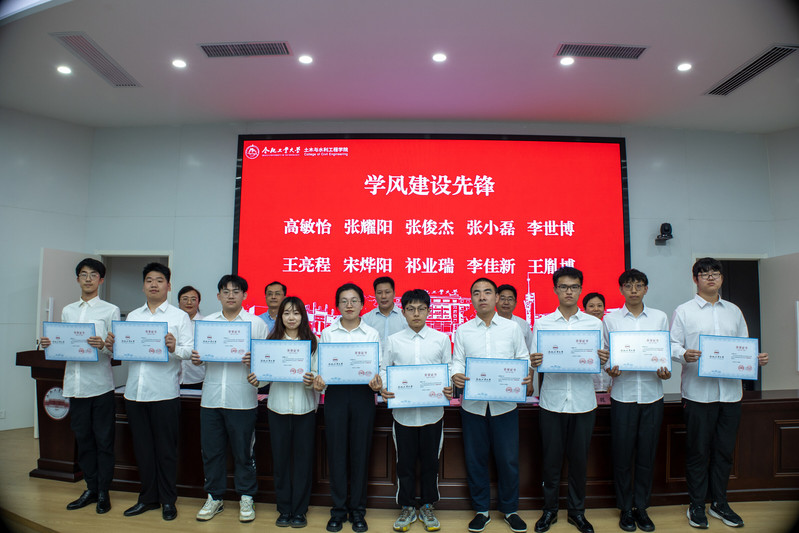 会议在雄壮的国歌中拉开帷幕,王东坡老师宣读了《关于表彰社团学姐漫画 第二届“砼创青年先锋”优秀大学生的决定》,对共产党员先锋、青年团干先锋、班长先锋、学风建设先锋、自强励志先锋、科技创新先锋、志愿公益先锋、网络文明先锋、文体素质先锋、少数民族学生先锋等10类优秀大学生进行表彰,主席台领导老师为获奖同学颁奖。学员代表土木工程(创新实验)21-1班许晋嘉同学作了发言。