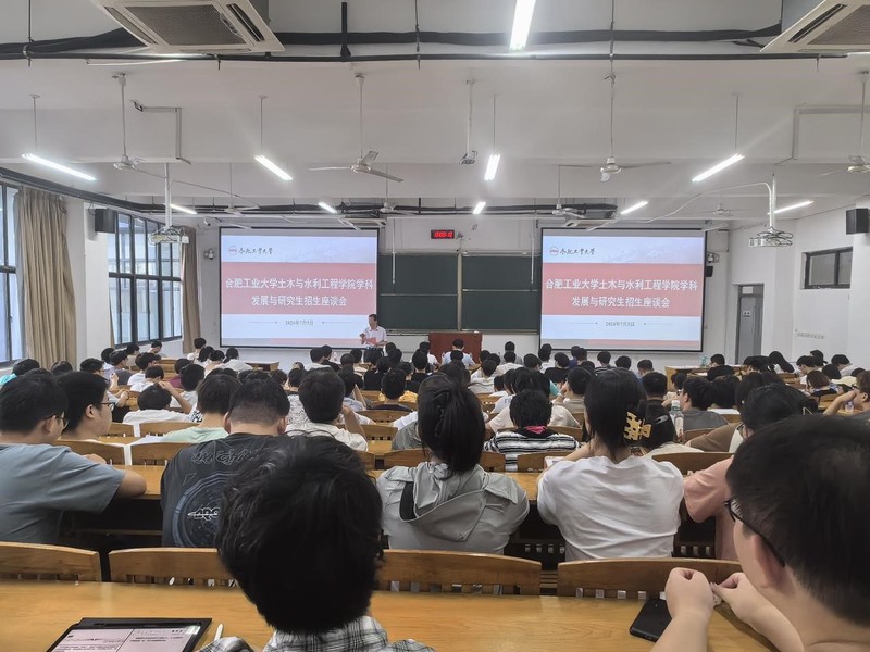 高鹏副院长详细介绍学院的发展情况与研究生招生政策,分享了历届研究生的培养与就业情况,并向在场学子发出诚挚的邀请,欢迎参加学院7月12-15日举办的“2024年优秀大学生夏令营”活动。李贝贝和项乃亮分别介绍了结构、防灾、路桥、岩土等研究方向与科研动态。针对研究生报考和夏令营活动,学生们积极提问,在场老师耐心解答,就就业前景、复试事项和导师选择等方面进行指导与交流。