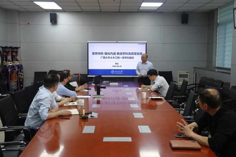 陈正教授作了题为《聚焦特色强化内涵推进学科高质量发展——广西大学土木工程一流学科建设》的主题报告,介绍了学科发展背景、举措和成效等。他表示,学科建设是学院发展的核心驱动力,需以“十五五”规划为纲领,以新一轮学科评估为契机,对标国际一流标准,全面提升学科竞争力。同时,要注重发挥学科群联动效应,加强基础学科与应用学科的交叉融合,为服务国家重大战略需求提供智力支撑。