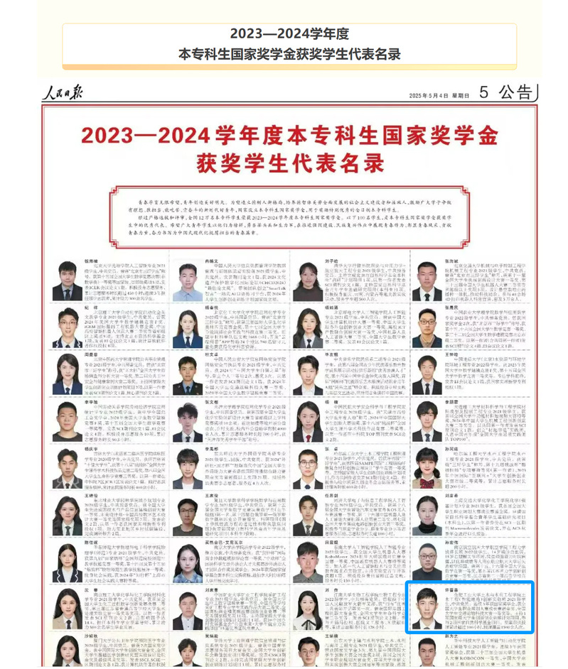在纪念“五四运动”106周年之际,5月4日,《人民日报》刊登《2023—2024学年度本专科生国家奖学金获奖学生代表名录》,社团学姐漫画 2021级本科生许晋嘉从全国12万名获奖者中脱颖而出,荣耀上榜(全国仅100人)。