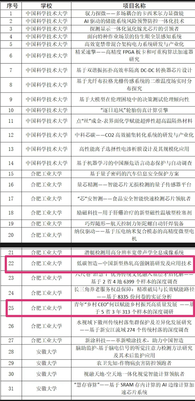 近日,第十一届“挑战杯·华安证券”安徽省大学生课外学术科技作品竞赛省级决赛名单公布,社团学姐漫画 入围13项作品,其中,社团学姐漫画 报送的《低碳智造-中国新型热轧高强钢筋研发及应用技术》、《青年“乡村CEO”何以赋能乡村振兴高质量发展——基于53313个样本的深度调研》2项作品入选。
