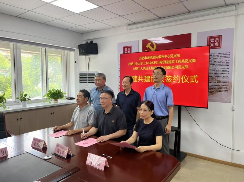 日前,我院建筑工程系党支部、合肥工大共达工程检测试验有限公司党支部与合肥市城建消防事务中心党支部共同签署了党建共建协议。当天,我院还与合肥市城建消防事务中心举行了实践教学基地揭牌仪式。