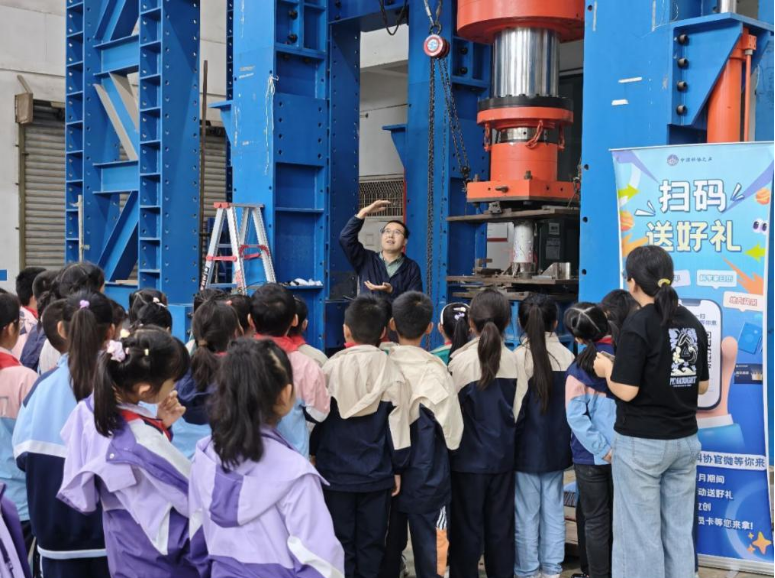 在水利实验室,小朋友们参观大型三级水利枢纽模型听取了讲解员细致介绍并就感兴趣的问题踊跃提问,在互动中加深了对水利知识的理解。在结构实验室,大家近距离观摩“环境耦合大型科学实验装置”了解到该装置应用情况,并学习了地震原理与建筑抗震知识,拓宽了科学视野。
