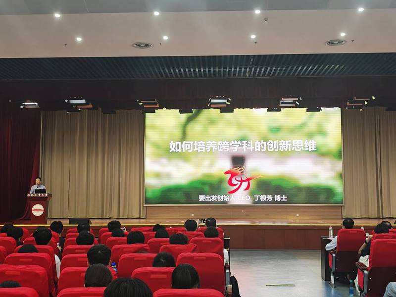 随后,丁根芳校友以“如何培养跨学科的创新思维”为题,结合自身的学习和创业经历,启发同学们如何学好专业知识、拓展知识视野,剖析如何科学地认知创新创业,如何科学地实践创新创业,以此推动同学们的创新创业意识,启迪同学们培养跨学科的创新思维。他鼓励同学们坚定“做自己喜欢的事”,要善于把握时代机遇,勇于在挫折中锤炼品质,将创新精神付诸实践,勇担时代发展重任。