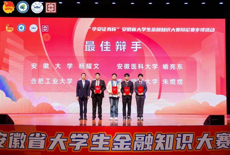 本次大赛由共青团安徽省委员会、安徽省学生联合会及华安证券股份有限公司联合主办,旨在通过富有思辨性与挑战性的辩论形式,提升大学生金融素养,增强金融风险防范意识。赛事采用多轮淘汰制,竞争异常激烈。翁小龙同学作为校辩论队的主力成员,将工科生特有的逻辑思维优势与辩论艺术相结合,沉着应战,妙语连珠,其清晰的论点、有力的论证以及敏捷的临场反应,给评委和观众留下了深刻印象。