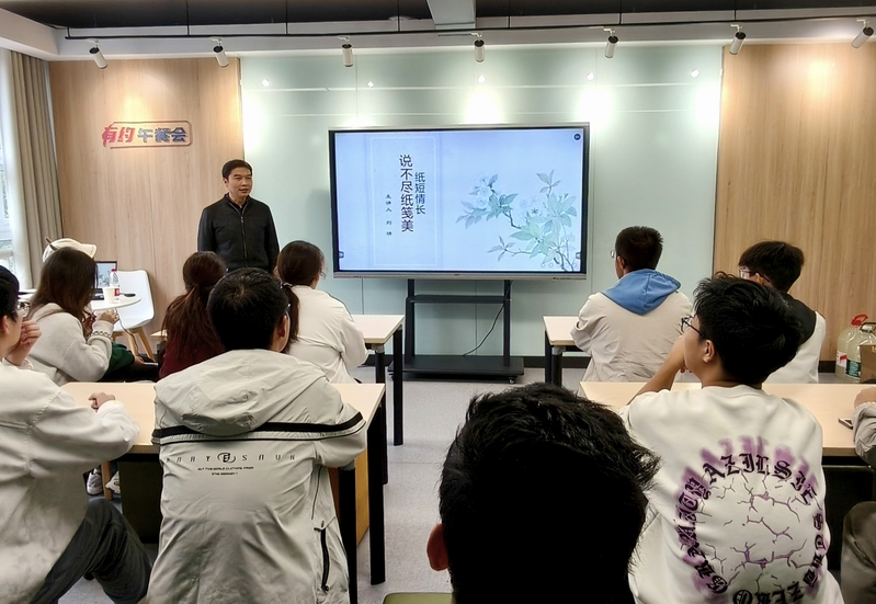为传承弘扬中华优秀传统文化,增强文化自信,11月9日下午,学院在翡翠湖校区学生社区沙龙空间举办了“多彩多姿—说不尽纸笺美”非遗体验活动,特邀国家级非物质文化遗产代表性传承人刘靖担任主讲,学院30余名师生参加活动。
