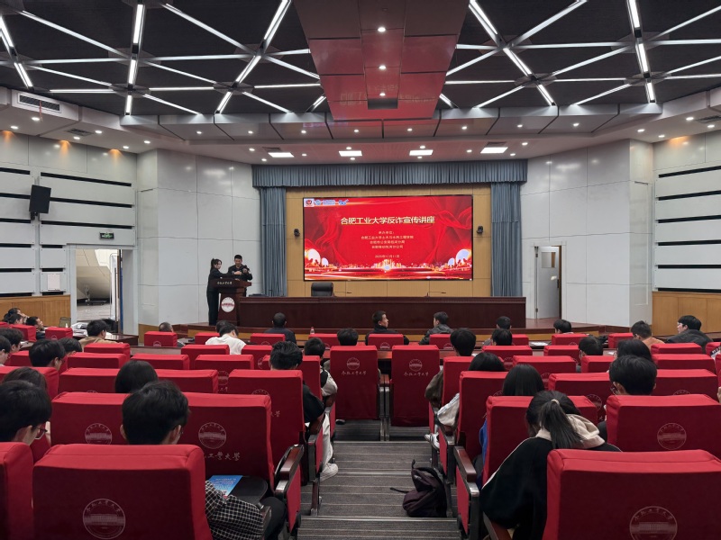 11月11日下午,学院在屯溪路校区学术会议中心一楼大报告厅开展“挺膺担当 反诈有我”主题宣传活动,邀请合肥市公安局包河分局警官进行现场讲座,学院100余名学生参加活动。
