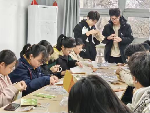 活动中,同学们对照书灯制作的步骤与技巧,手持双面胶、木板等材料,迅速投入创作,从纸板外壳的粘贴把控,到纸张折叠的力度拿捏,再到灯带安装的细节处理。在翻折、拼接、组装的过程中,同学们慢慢放下焦虑,沉浸在手工创作的乐趣里。当亲手制作的书灯亮起暖光时,大家在专注的创作中感受到了内心的平静,也收获了满满的成就感。