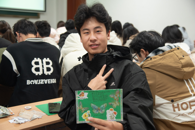作品展示环节更是吸引了众多目光。巧妙的手工设计配合温暖走心的文字,引来同学们驻足欣赏。大家轻声诵读贺卡上的寄语,交流内心的触动与感悟。这些贺卡将直达孩子们手中。它们不仅是新年的问候,更是情感的寄托与陪伴的象征。每一份作品都将成为传递爱与希望的纽带,让公益温暖深入人心。