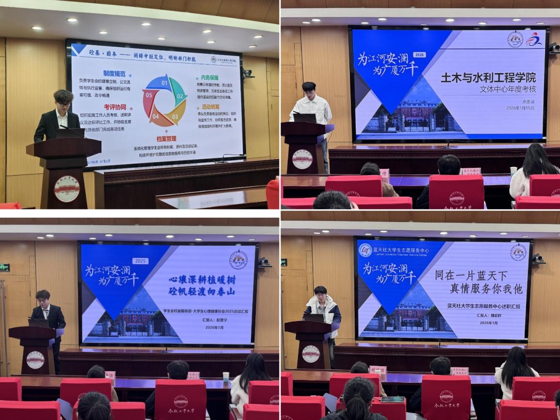 会上,学生会综合办公部、蓝天社大学生志愿服务中心、大学生心理健康协会、学生会新媒体中心、学生会科创中心、学生会文体中心等部门负责人依次上台述职,全面回顾了2025年度工作开展情况,系统总结了工作成果与创新亮点,并就下一阶段的工作方向与发展路径进行了深入思考和规划展望。